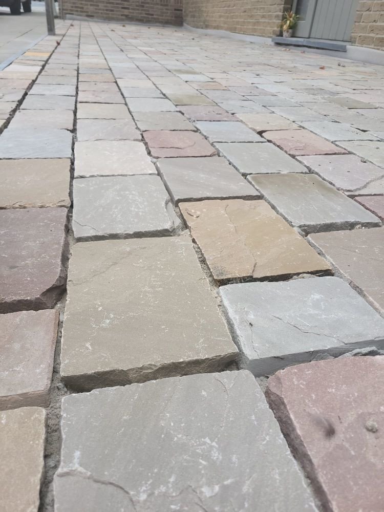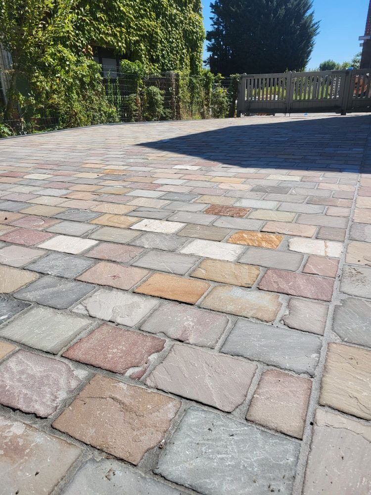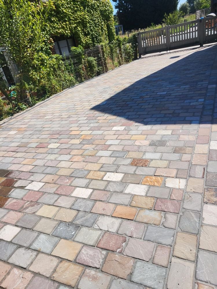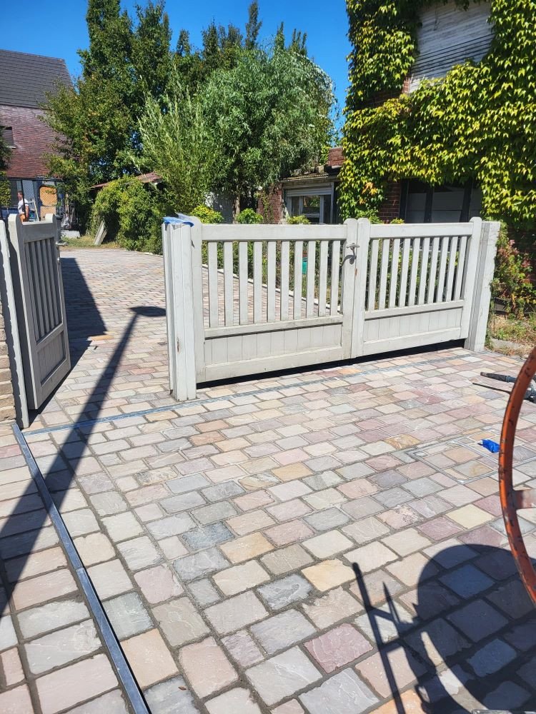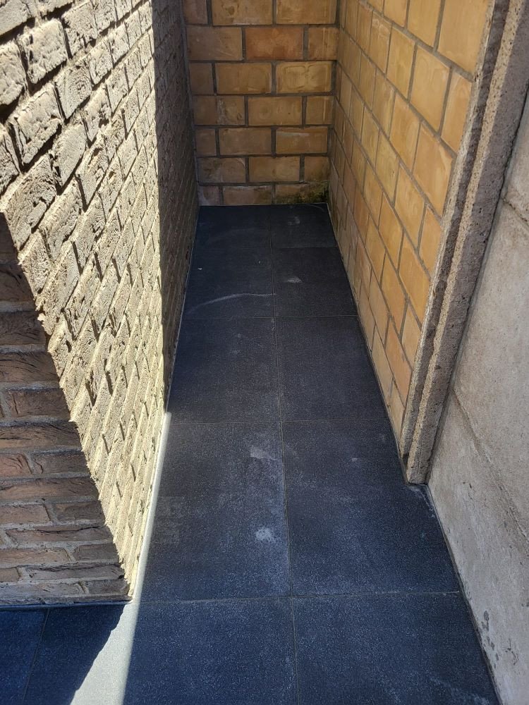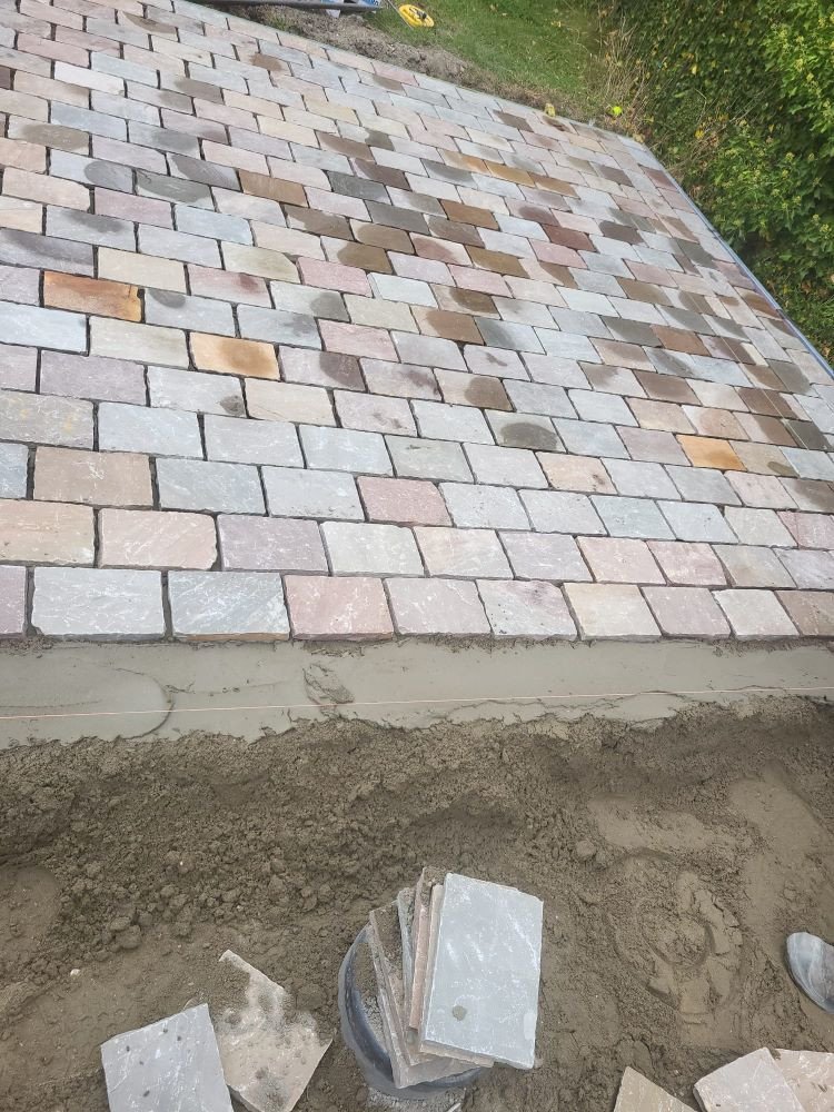 aanleg inrit en terras kandla bruin en keramische tegels Esen